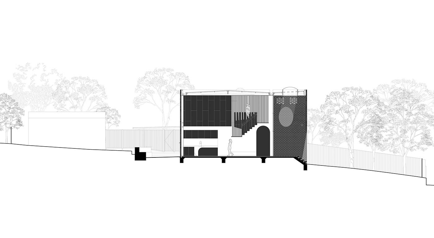 House #26 is a black brick-clad house that perches on the slope of a leafy suburban neighbourhood, elevated from the busy main road. The house is designed for a close-knit family with young adults living at home. The project aims to create a place for the family to enjoy living together as well as apart. Conceptually, it is conceived as two dwellings nested together sharing a double-height living space which extends out as an enlarged outdoor veranda that welcomes its visitors.