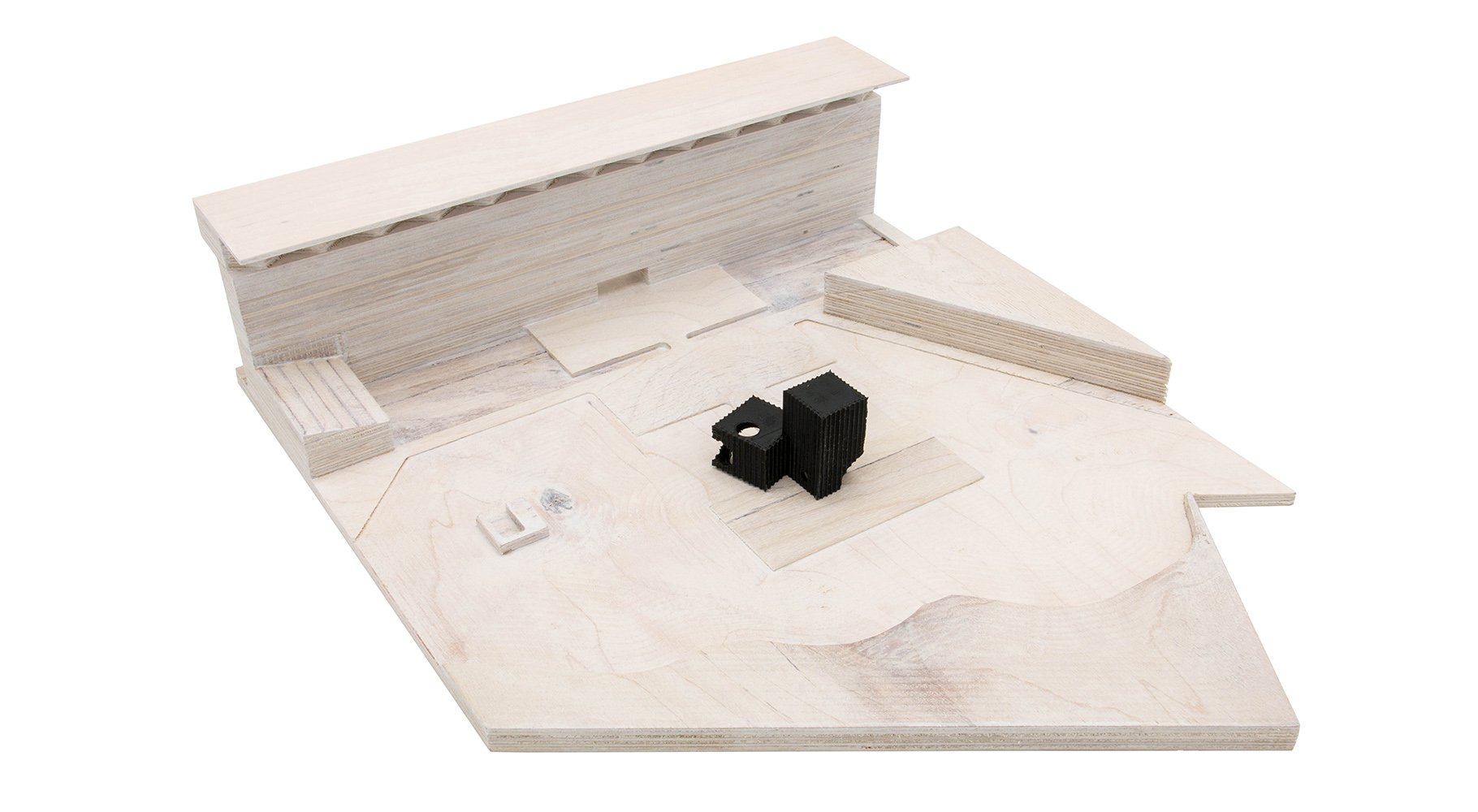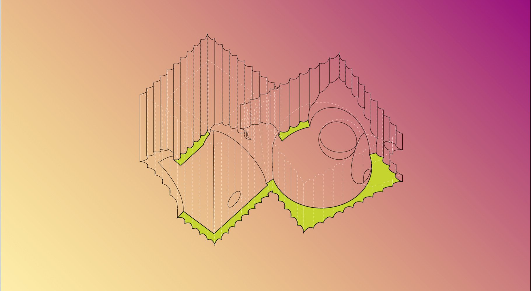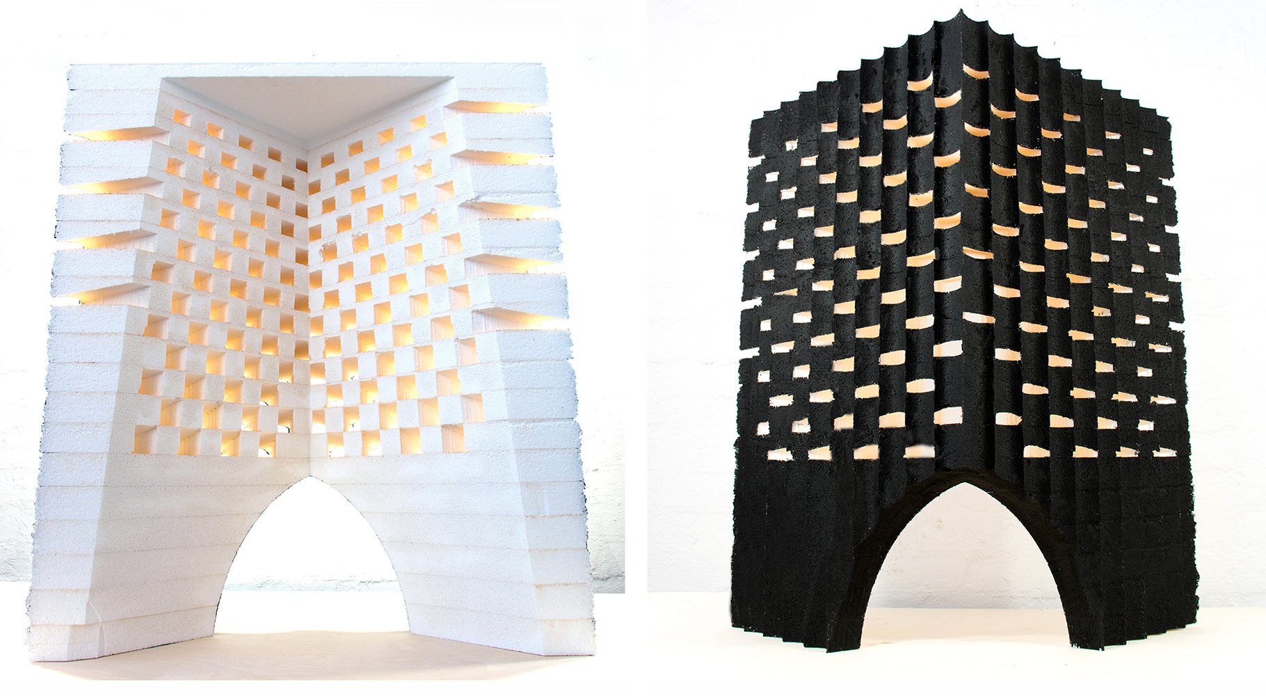 While we want the audience to perceive the illusion of mass, the pavilion is constructed from lightweight expanded polystyrene (EPS) block coated with UV and impact resistant coating to form a hard shell. The pavilion is broken down into chunks or blocks which can be milled and hot wire cut using a 7-axis robotic arm.